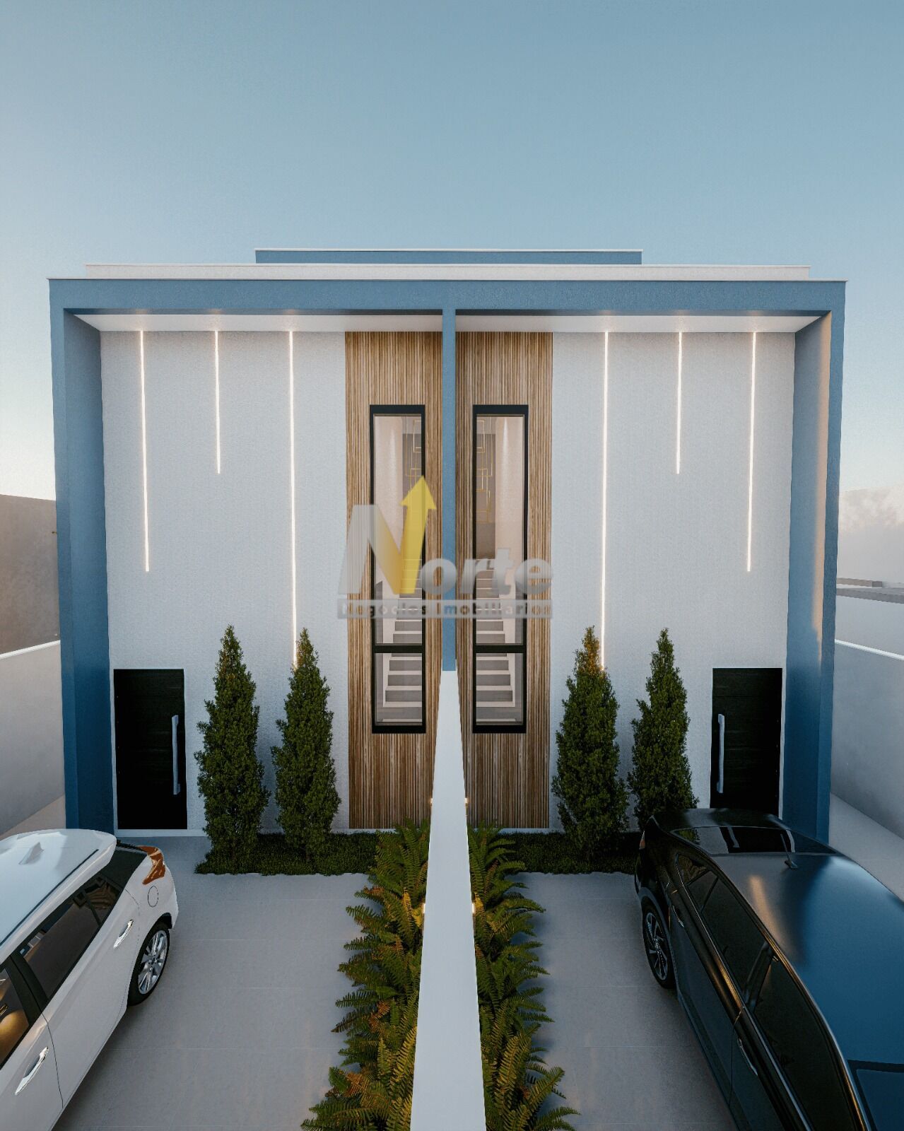 Vagas para 2 carros, conceito arquitetônico contemporâneo